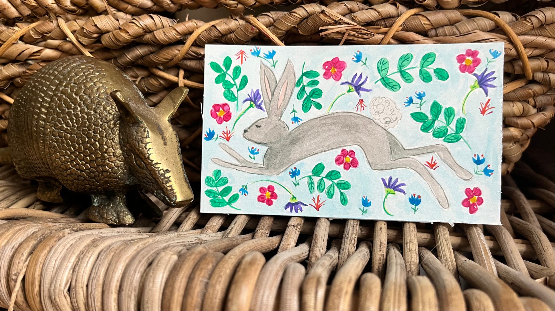 Mini original watercolor of South Texas Jackrabbit. On 100% cotton watercolor paper.